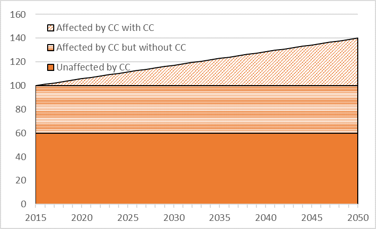 At the heart of CLIMATE SCRUTINY is an understanding of the implications of climate change for the net benefits generated by the policy. There is now a growing library of work that applies Climate Change Impact Appraisal (CCIA) to policies and projects in each of the main sectors affected by CC. This work aims to build on existing practices for policy/programme appraisal and to ask the question: what are the net benefits without taking CC into account and how do these change when CC is taken into account. CCIA uses the CC% indicator, defined as (B-A)/B, where B = the net benefits with CC and A = the net benefits without.